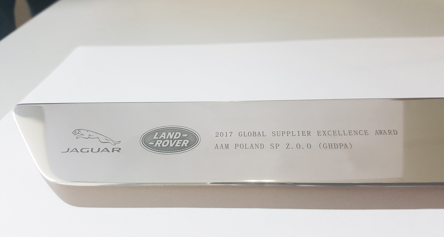 AAM was recognized for supplying axles for the Jaguar F-PACE, XE and XF and the Range Rover Velar and was one of just 15 suppliers to receive the Supplier Excellence award.