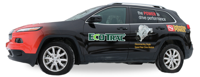 Originally launched on the 2014 Jeep Cherokee, AAM’s EcoTrac Disconnecting AWD gives drivers the performance of an AWD vehicle with the fuel economy of a front wheel drive vehicle by automatically and seamlessly using only the front wheels when AWD is not required.  The EcoTrac AWD system disconnects at the power transfer unit (PTU), so that the driveshaft stops spinning and power is no longer sent to the rear wheels. Less spinning means less fuel consumption and fewer emissions.  When the EcoTrac system senses that road conditions necessitate AWD, EcoTrac automatically reconnects the PTU and rear drive module to seamlessly provide AWD.