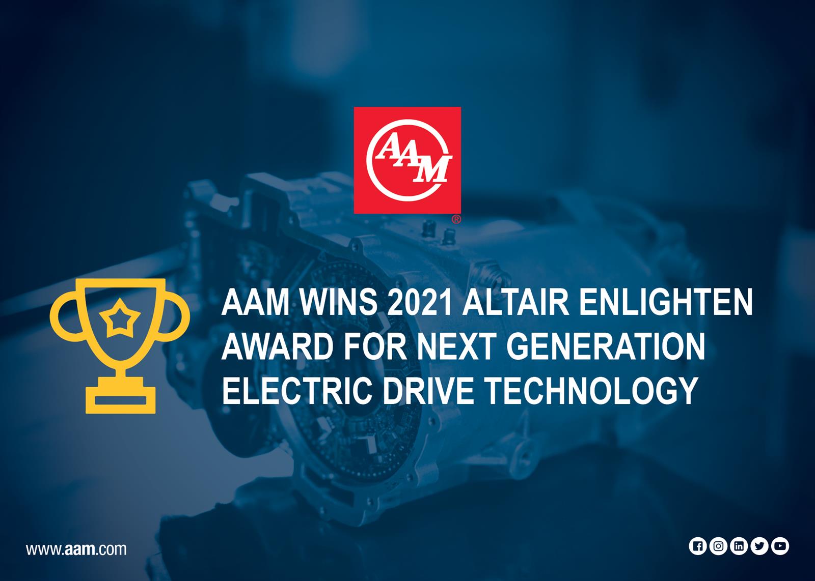 This is the second time AAM has won the Altair Enlighten Award. In 2018, AAM was the first recipient of the Enlighten Award in the Future of Lightweighting category for lightweighting innovation in conventional driveline technology.